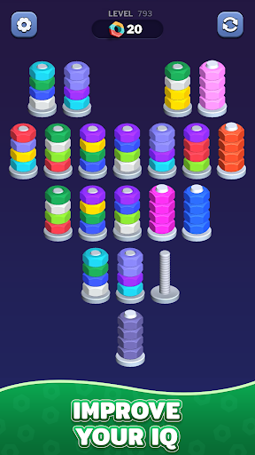 Nuts Color Sort: Sorting Games APK is a fun and addictive sorting puzzle game designed for players who enjoy logic-based challenges and visually pleasing gameplay. With its smooth mechanics and satisfying animations, Nuts Color Sort Android offers a calming yet stimulating experience as you organize colorful nuts, bolts, and pegs into their proper placements. Whether you’re a fan of brain teasers or casual sorting puzzles, this game provides endless entertainment.