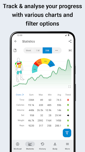 Performance tracking is one of the most powerful features of this application. The app collects data from past sessions and generates progress reports that display improvements in strength, endurance, and overall workout frequency. Users can view graphs showing their progress for specific exercises, track personal records, and monitor how their volume load increases over time.